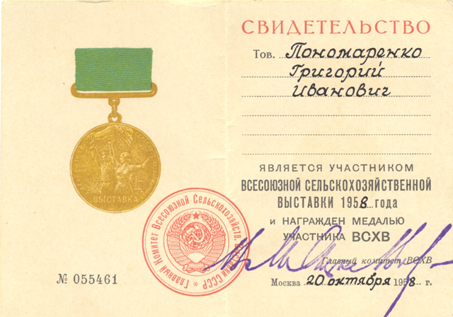 ㅤㅤㅤУчастники выставки всенепременно получали медали и почетные грамоты. Примерно такие, как вы видите здесь. Пользуясь случаем, я хотел бы поблагодарить моего коллегу – генерального директора АО «Блок» Владимира Викторовича Шульгу за предоставленный раритет тех социалистических времен: